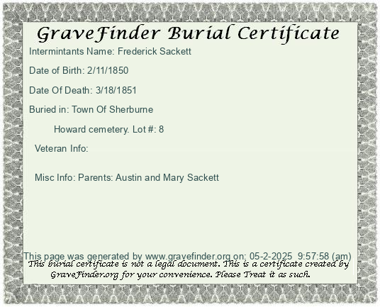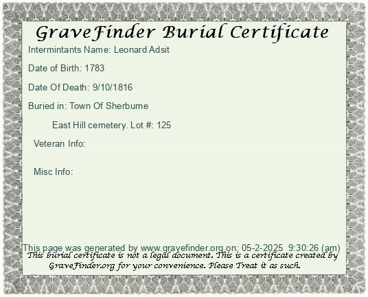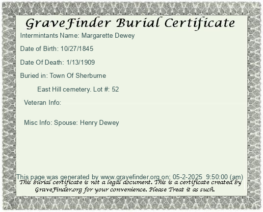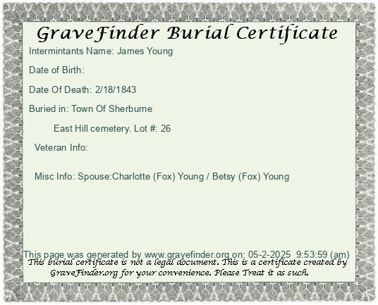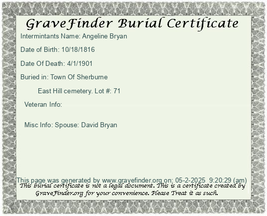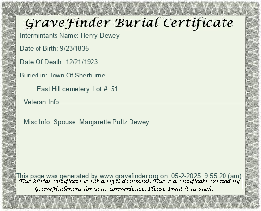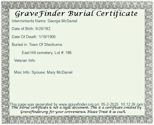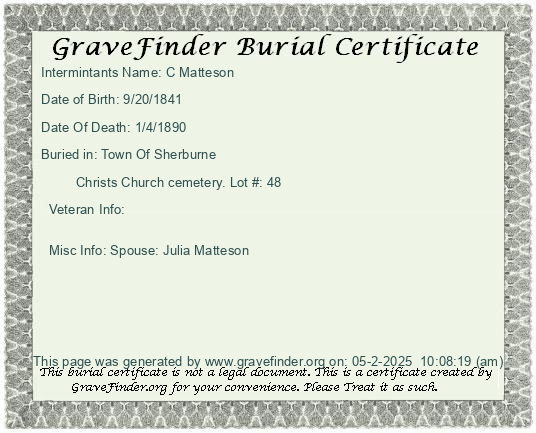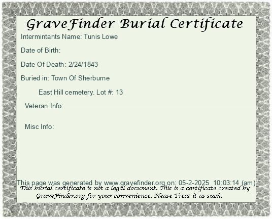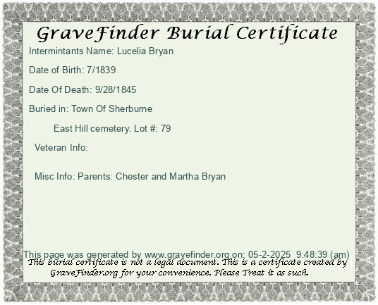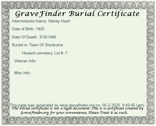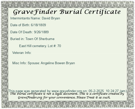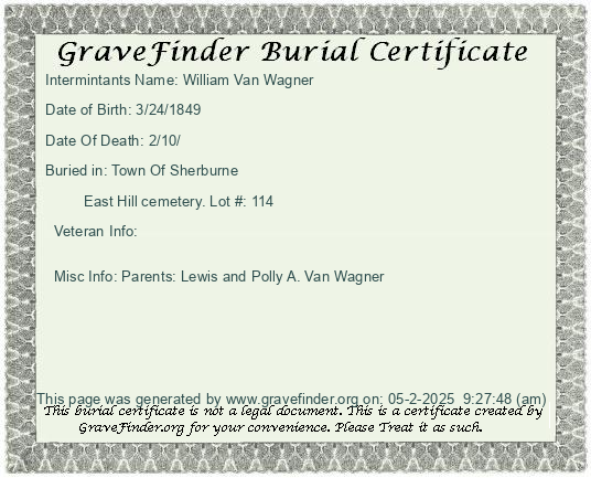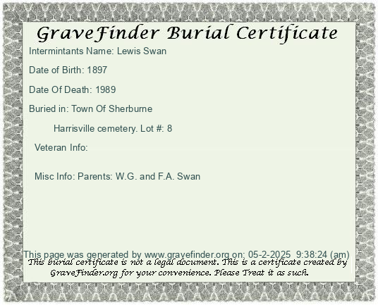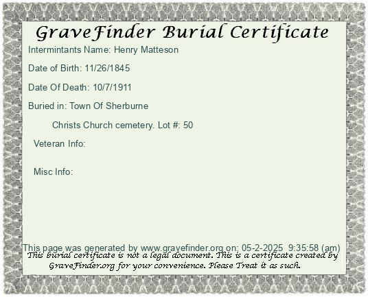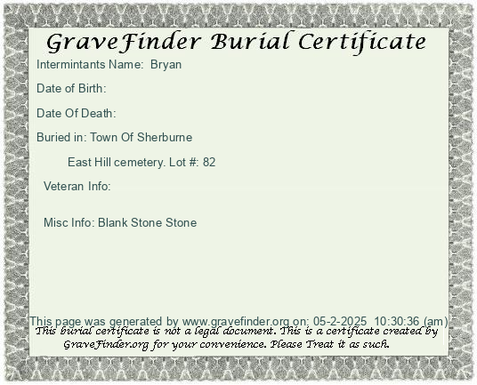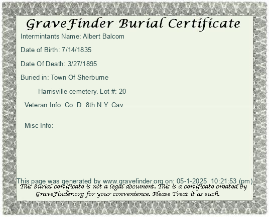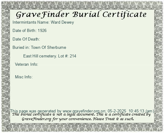 New York - Chenango - - - - Lot Number - Burial Certificate | Cemetery Map |
