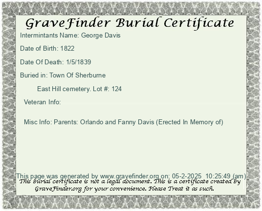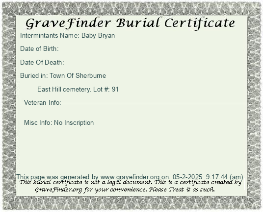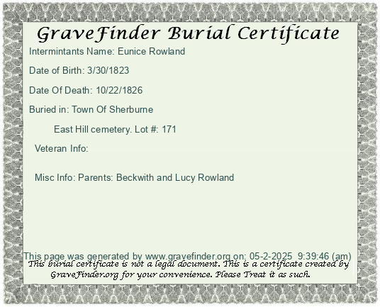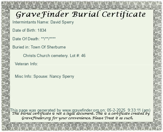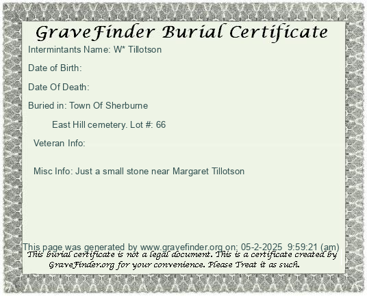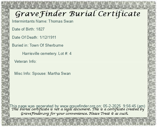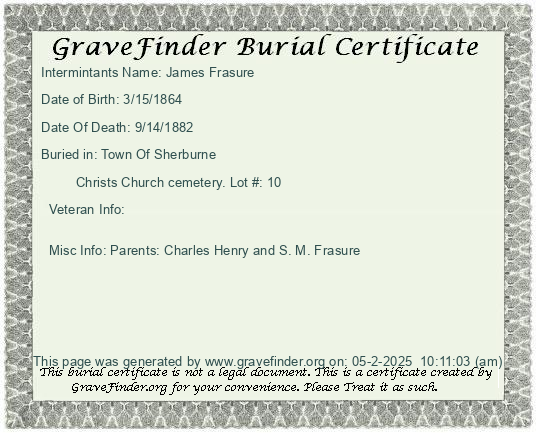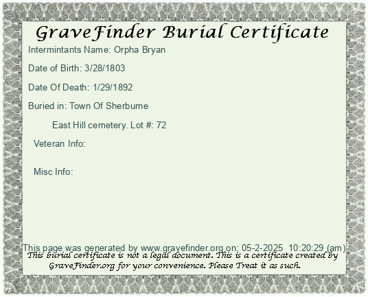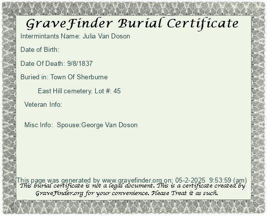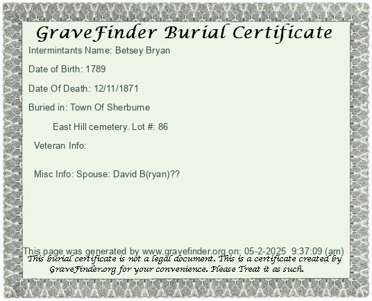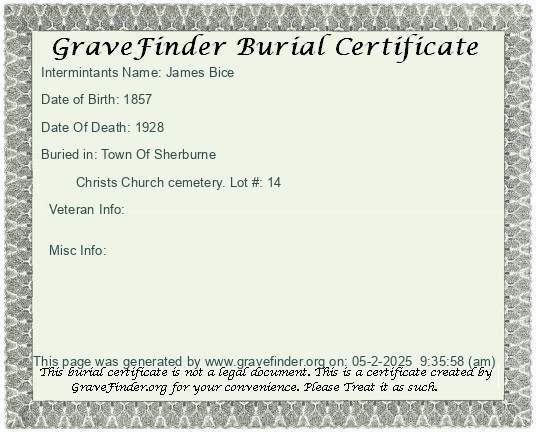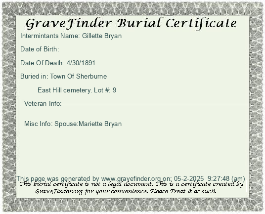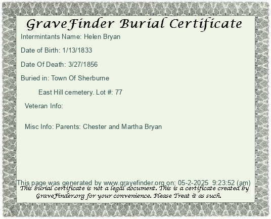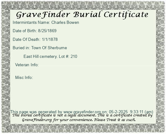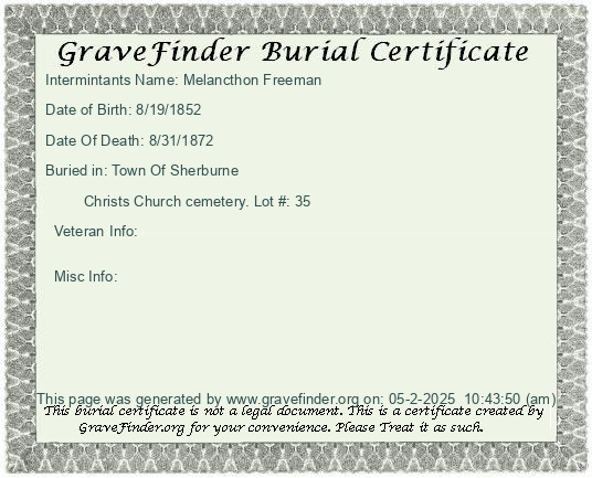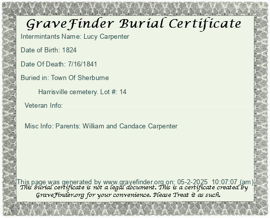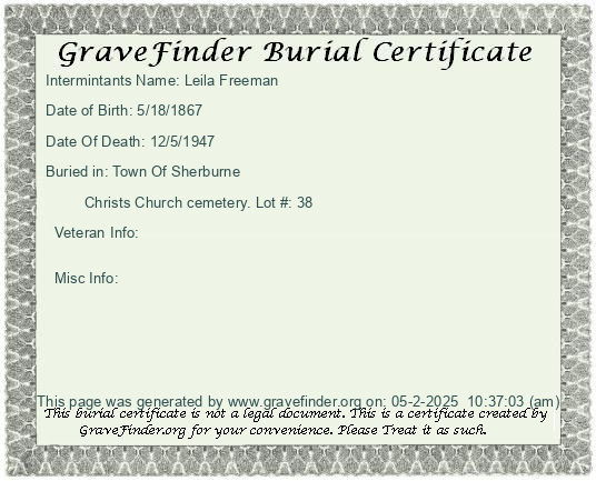 New York - Chenango - - - - Lot Number - Burial Certificate | Cemetery Map |