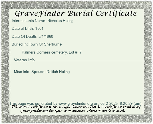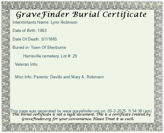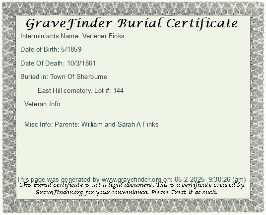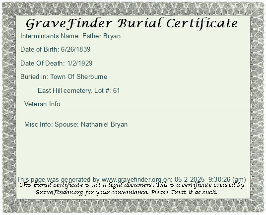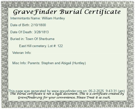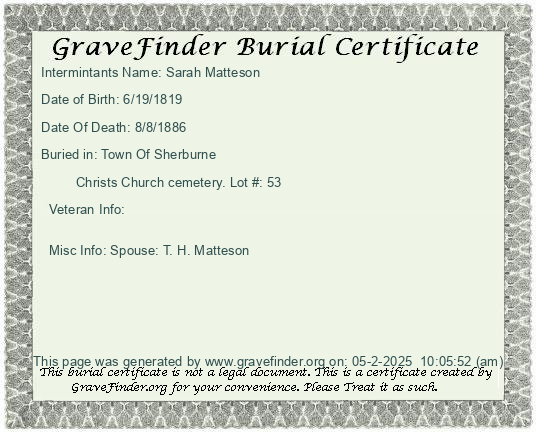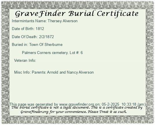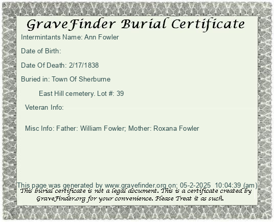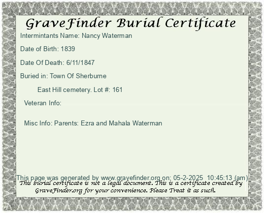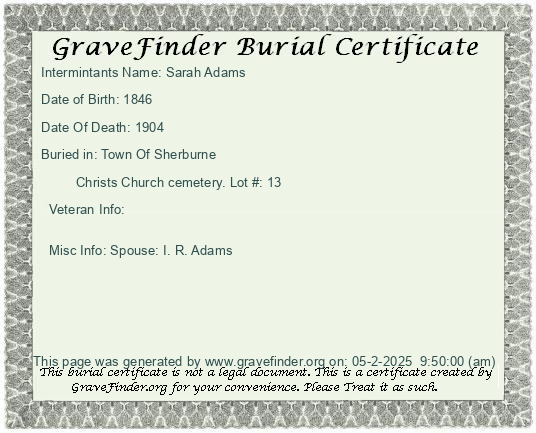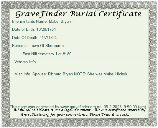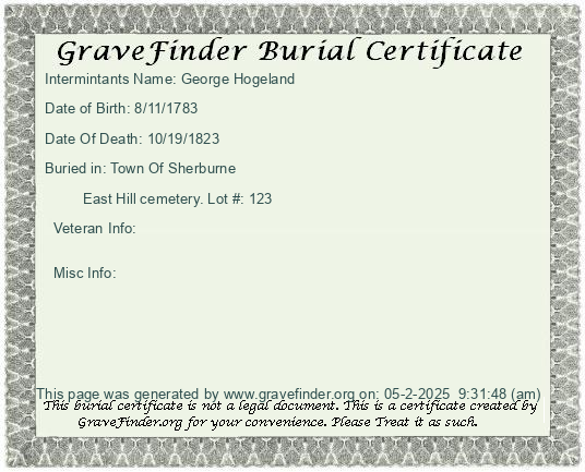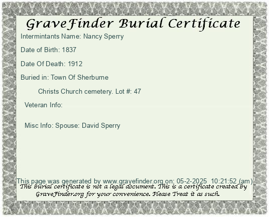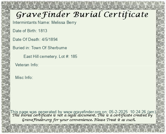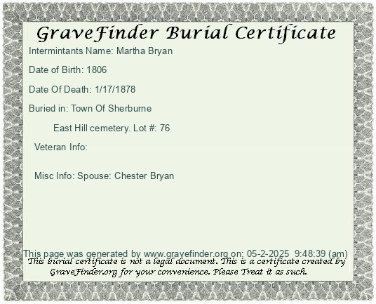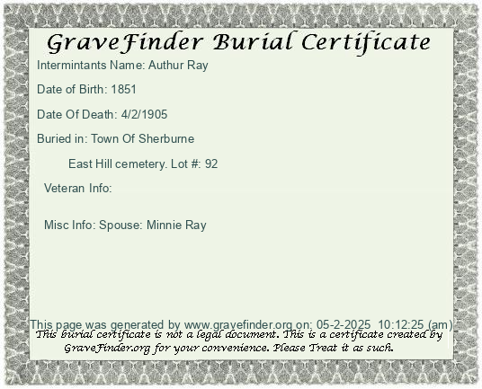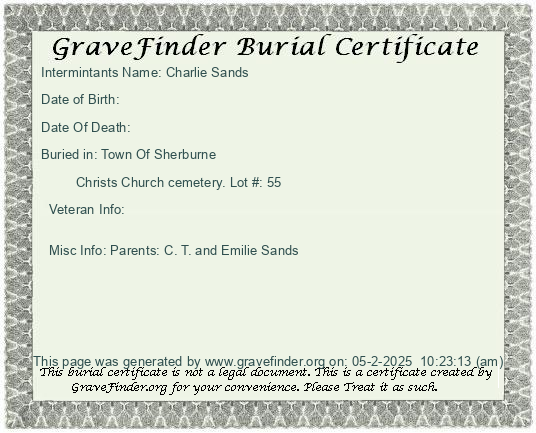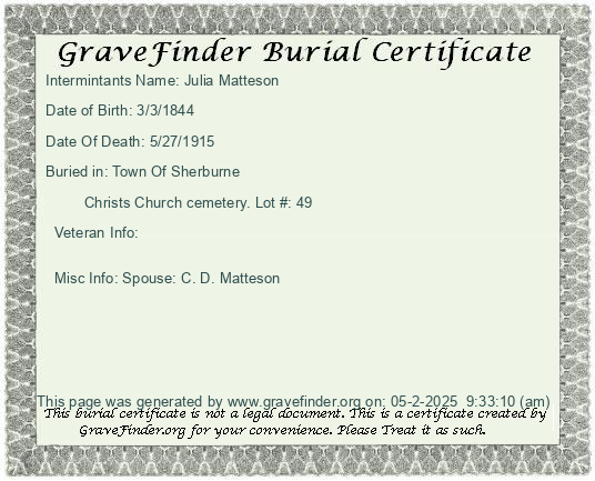 New York - Chenango - - - - Lot Number - Burial Certificate | Cemetery Map |