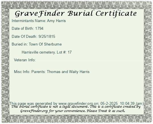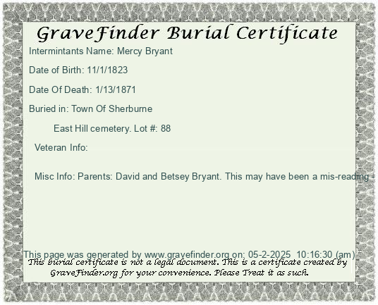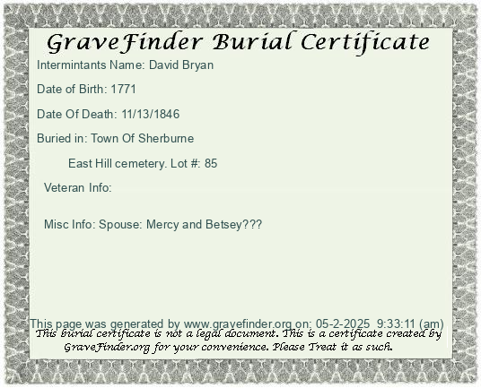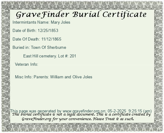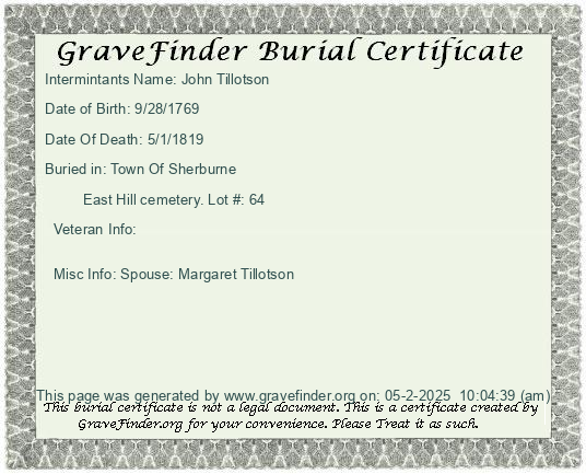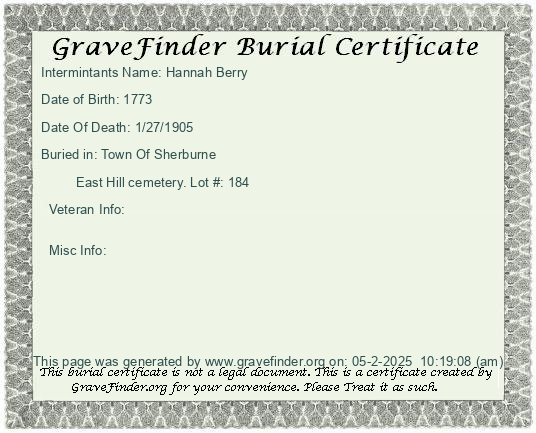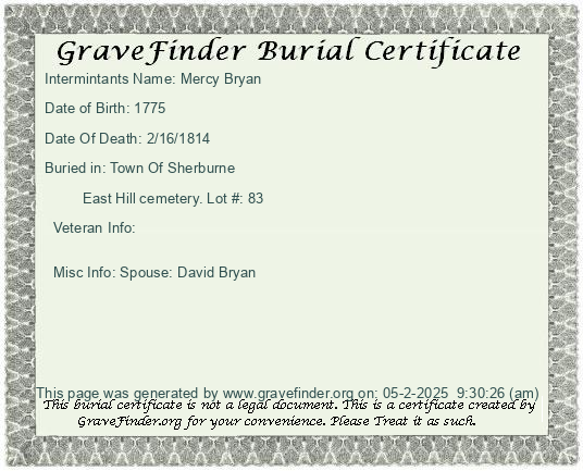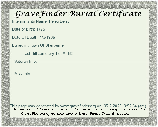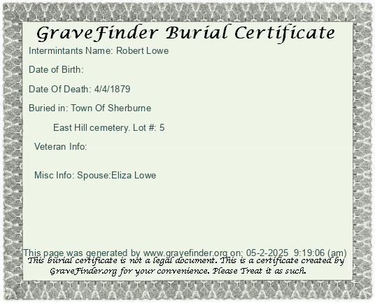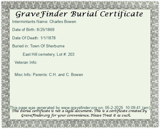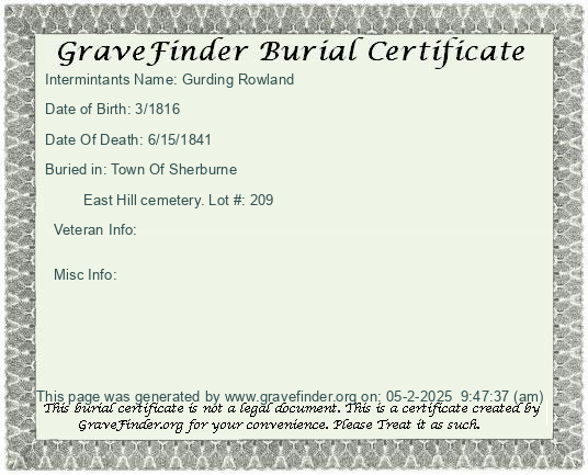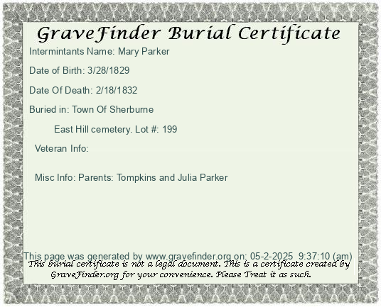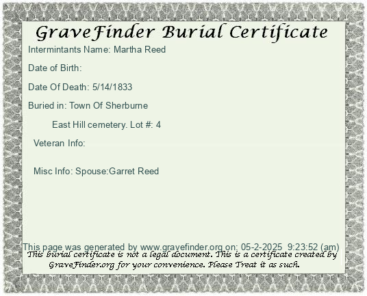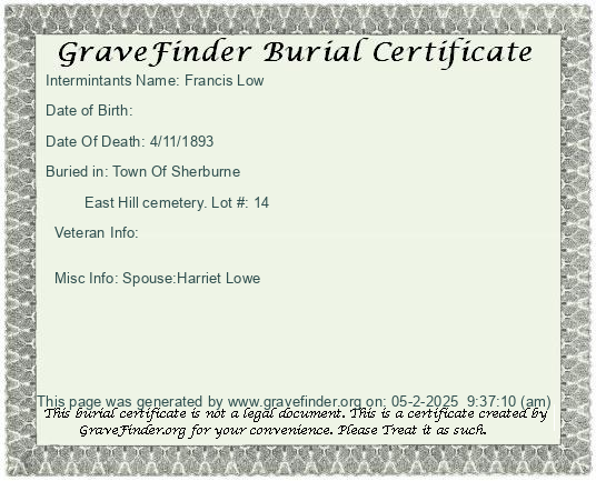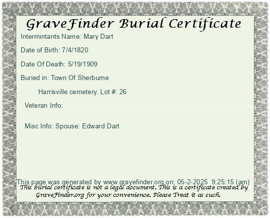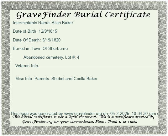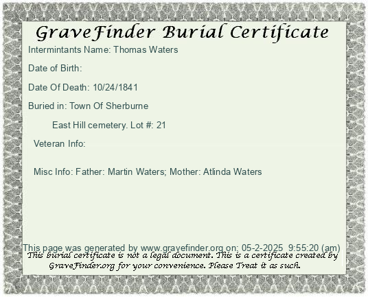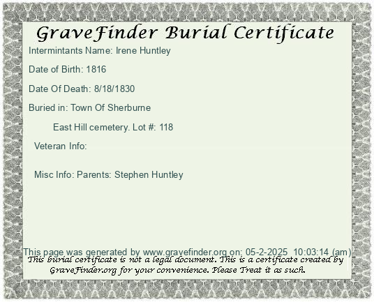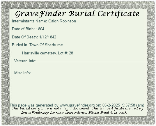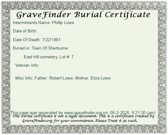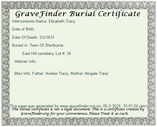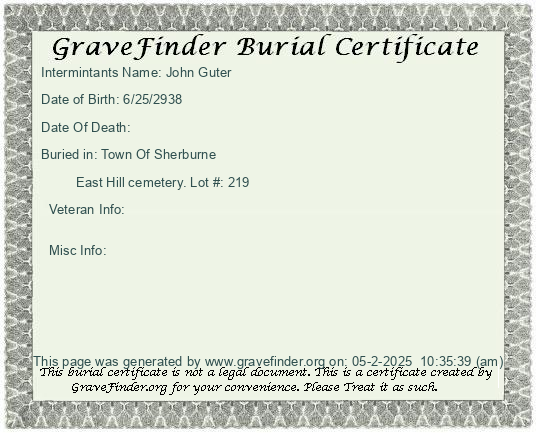 Burial Certificate | Cemetery Map |