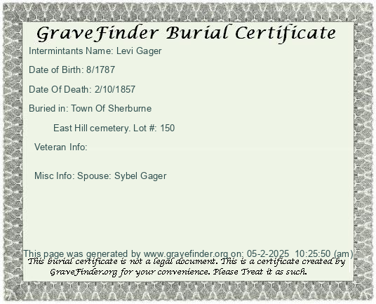 Lot Owner - William Degaff