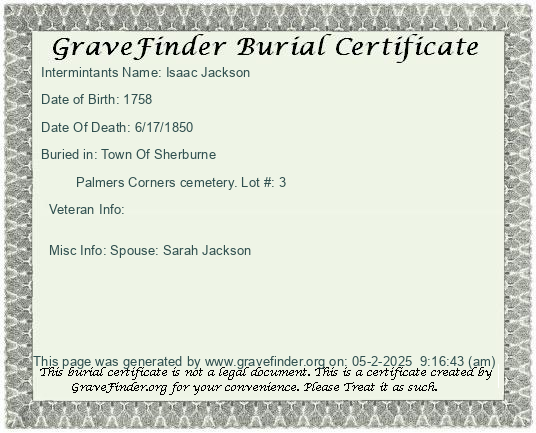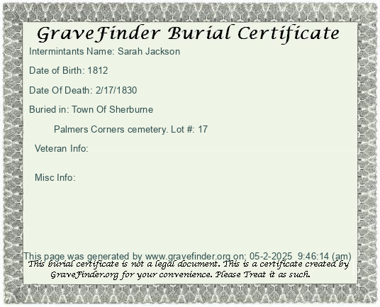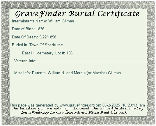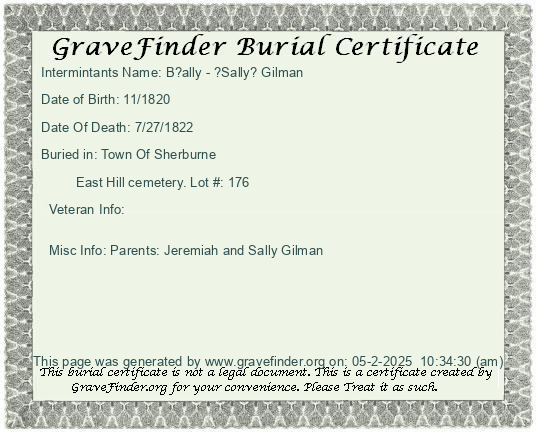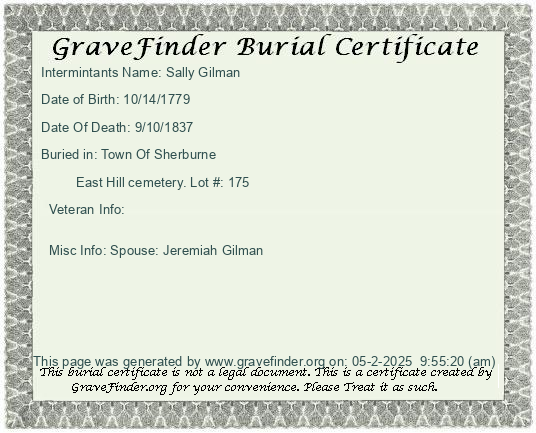Lot Owner - Jeremiah Gilman