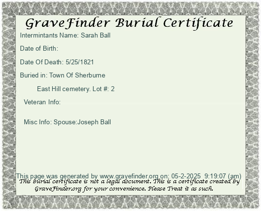 Misc Info: Spouse:Joseph Ball