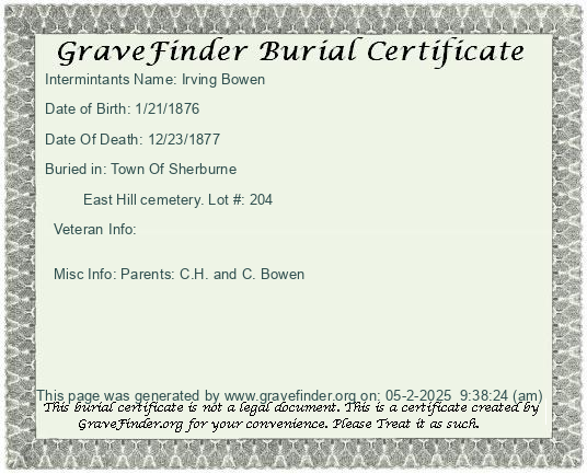 Lot Owner - Irving Bowen