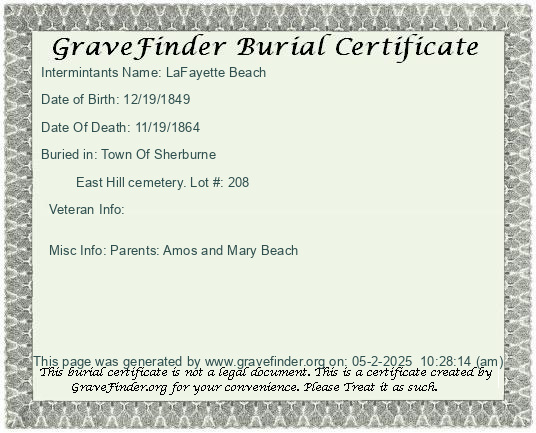 Misc Info: Parents: Amos and Mary Beach