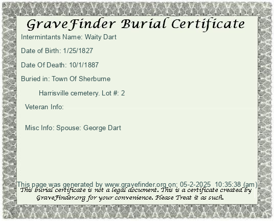 Misc Info: Spouse: Waity Dart
