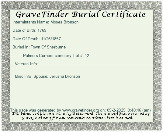 Lot Owner - Moses Foster