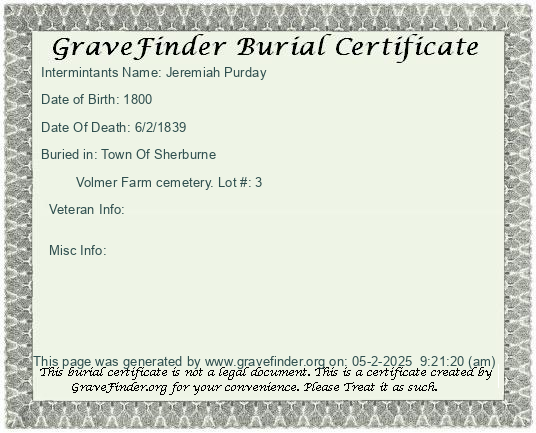 Lot Owner - Jeremiah Purday