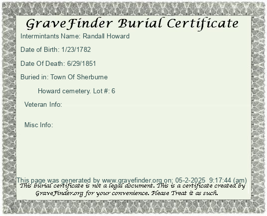 Misc Info: Spouse: Martha Howard