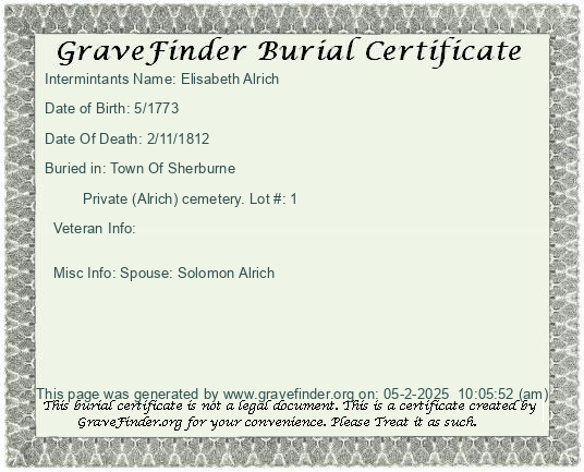 Misc Info: Spouse: Solomon Alrich